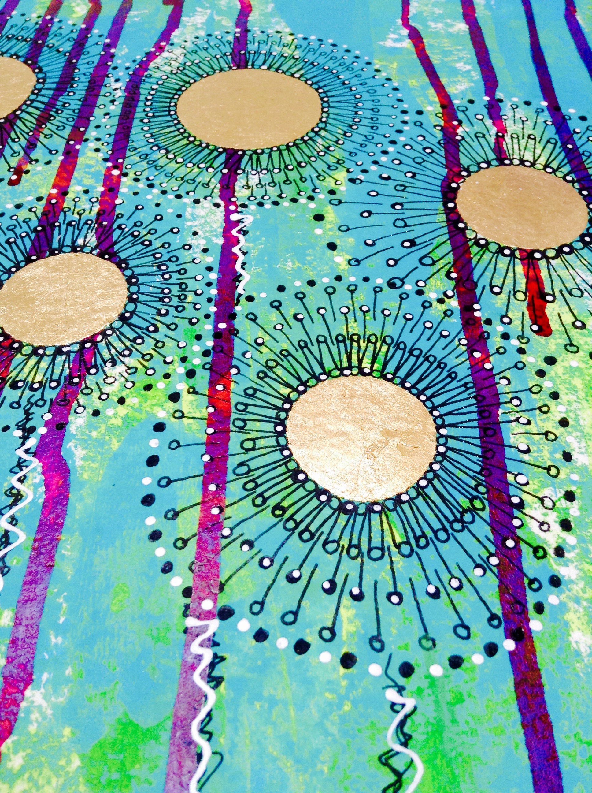 The original assignment was to make a boat on which we would use gold leaf. I was not inspired by that idea, so I thought to make these flowers, using the same pattern I used for the dandelions from the last week. Gold leafing was quite a pleasure, but I talked about it already last week.