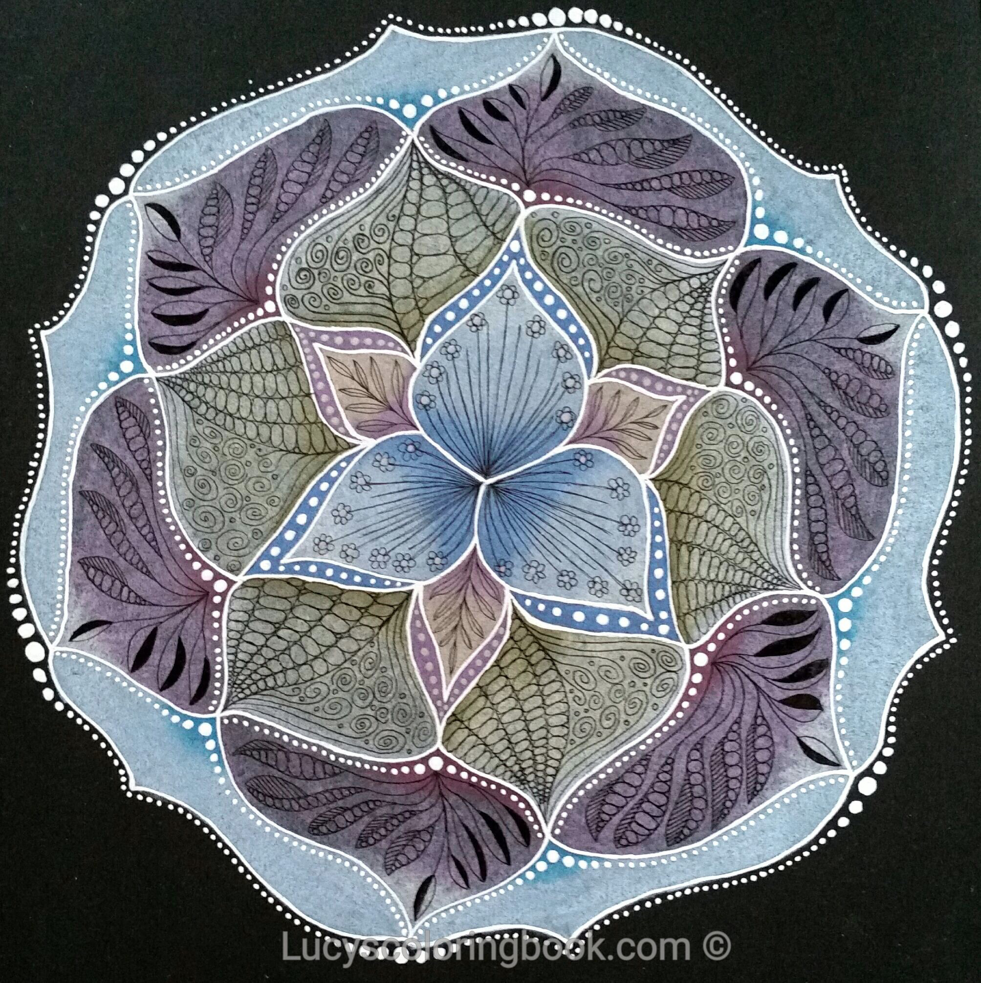 There were large areas to color with color pencils and then doodles also took awhile. Color pencils make the surface waxy and slippery, so doodling with ink on top is not very easy. I made lots of mistakes, but I am rather happy with the end product. It looks quite good.