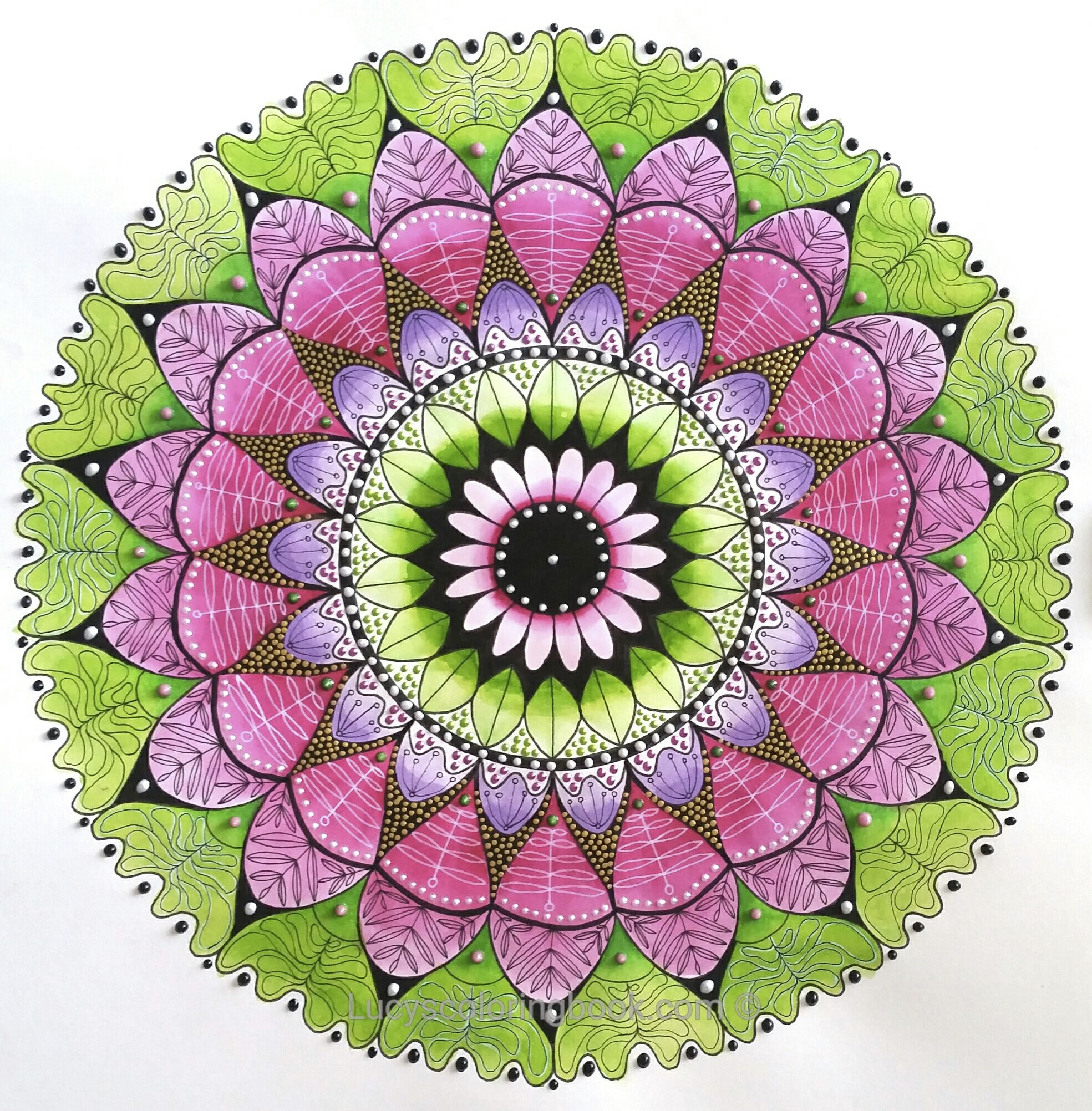 I have been lazy again. Days are shorter and shorter and to-do-list longer and longer. Each day I am catching up with something and it makes me nervous. By four pm I am exhausted and need to rest. Am I getting older and more easily tired or is it just an impression, maybe I am just trying to do more and more and I am not managing. Anyway… I have finished the mandala that I showed you in the last post. I am quite pleased with it, even though there are some new paints for making dots that I bought last week and tried out and they did not impress me…