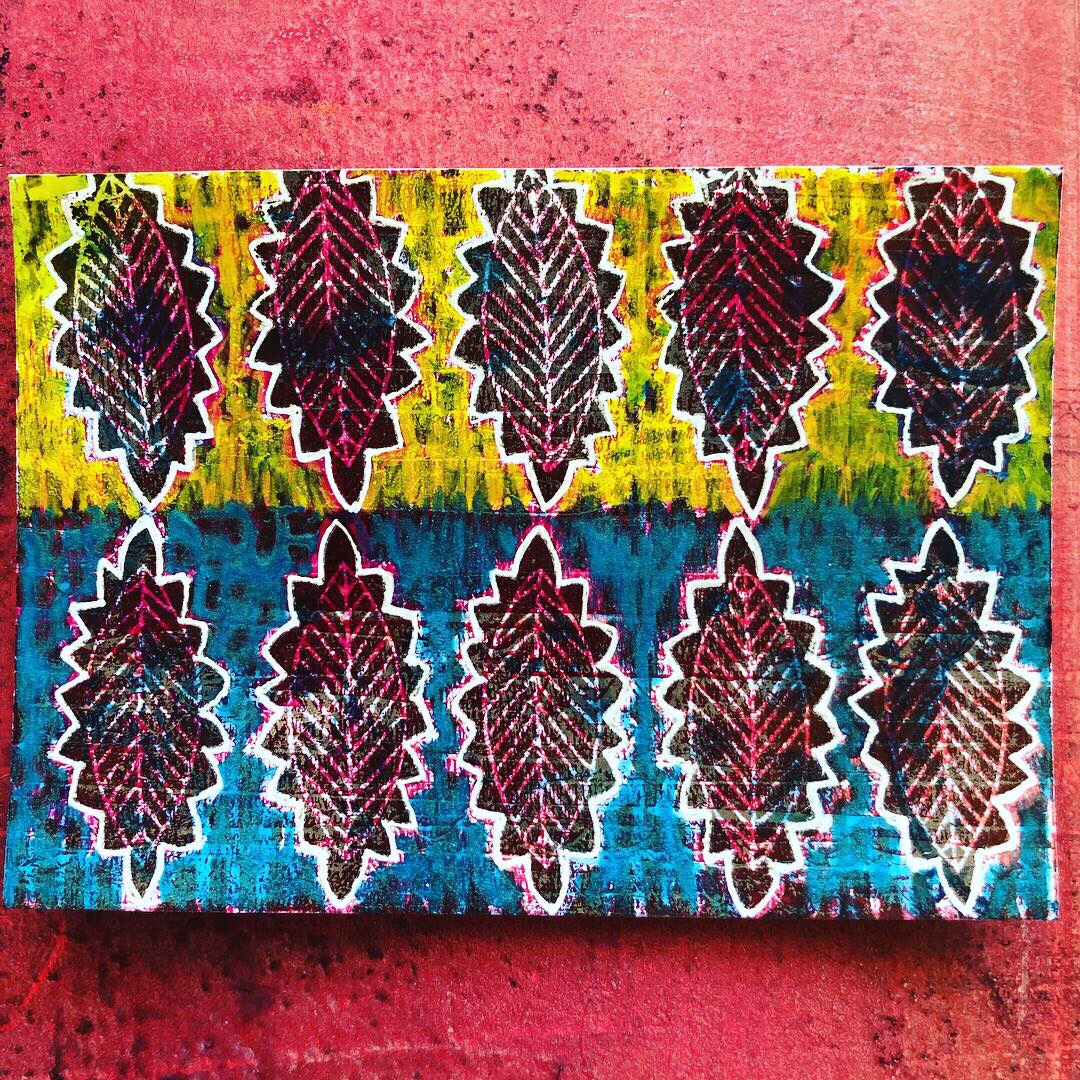 Almost forgot to post this one. Day 6 of ICAD. Stamp on gelli print and then posca markers on top. Quite enjoyed it. Weather is changing each five minutes and it’s affecting my mood….