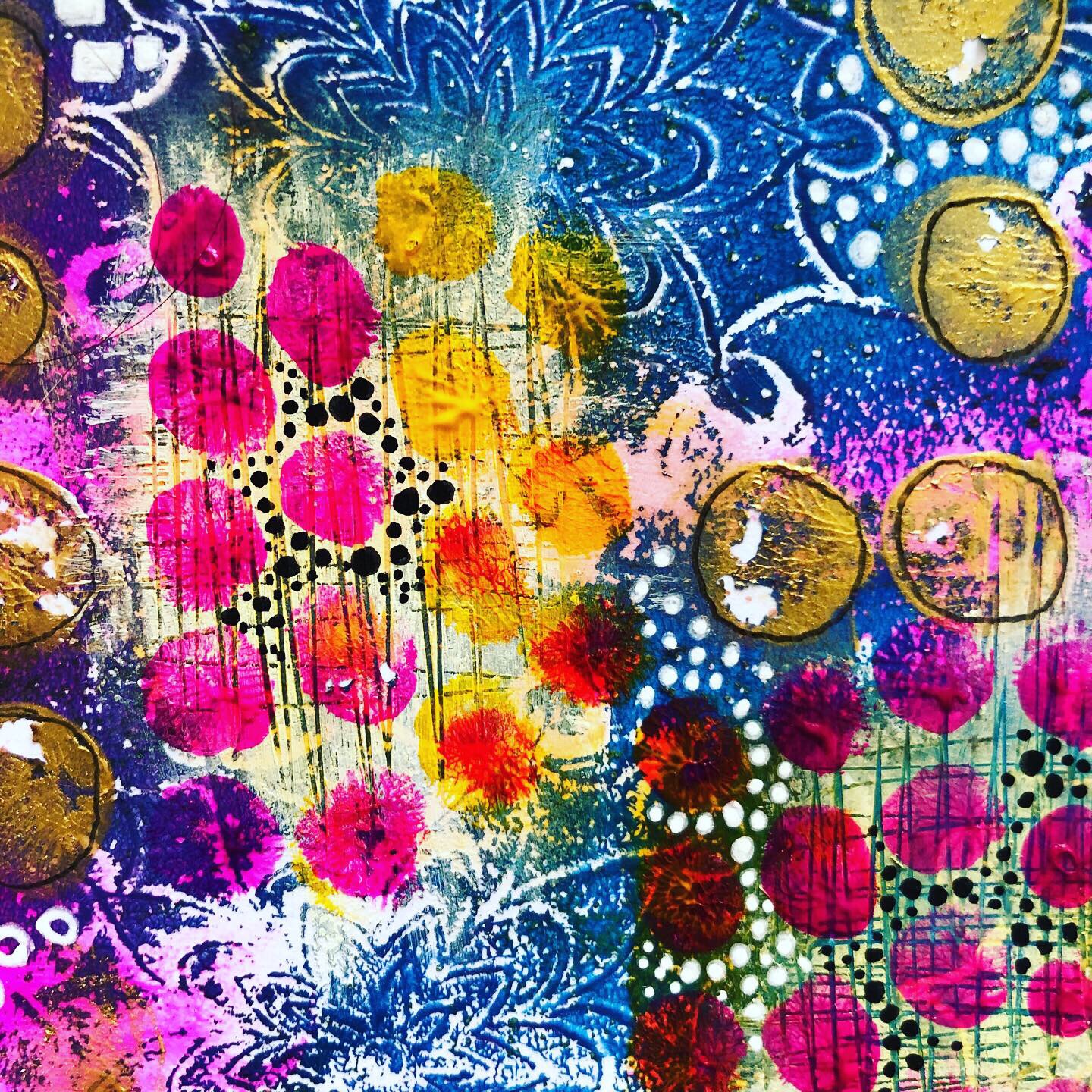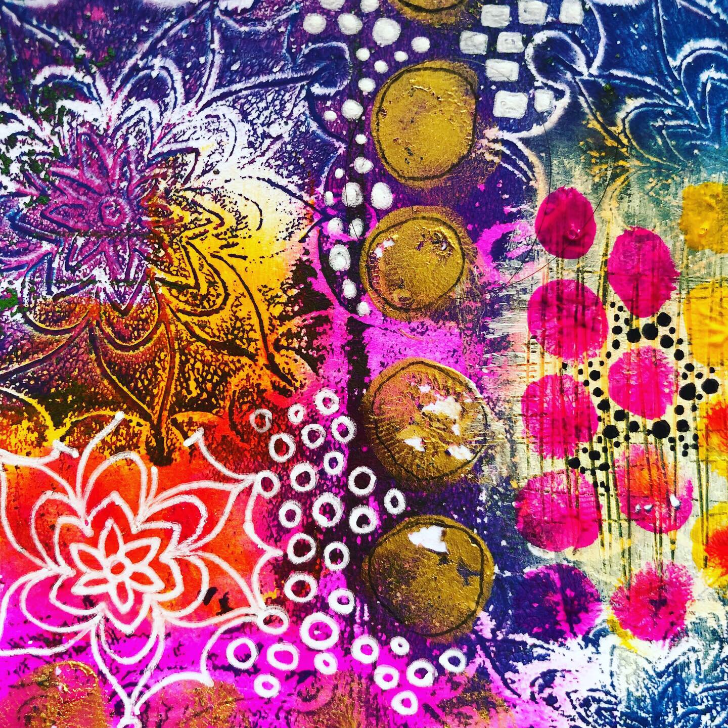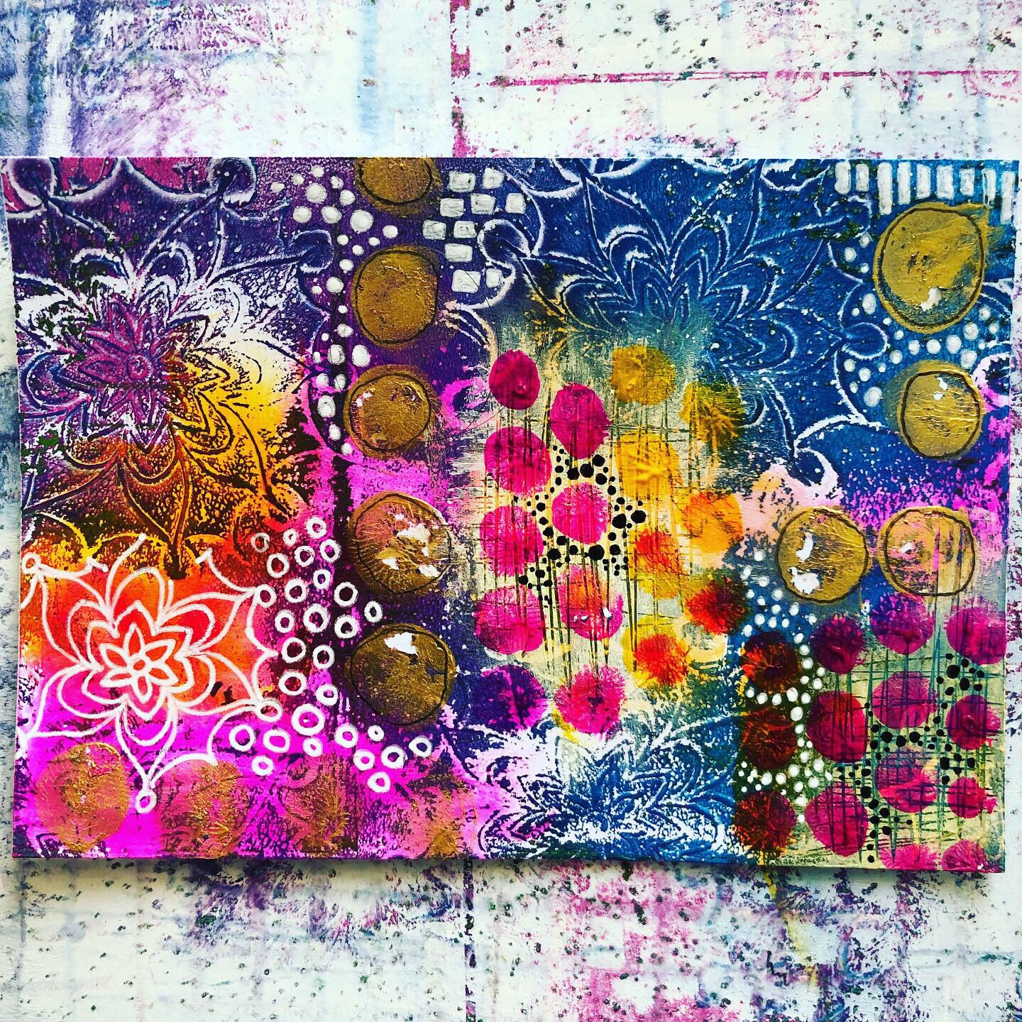 Day 18. I carved a new stamp and made several prints. Then I doodled on top… this process is quite satisfying I have to say. No thinking, just kind of doing what feels right at the moment.