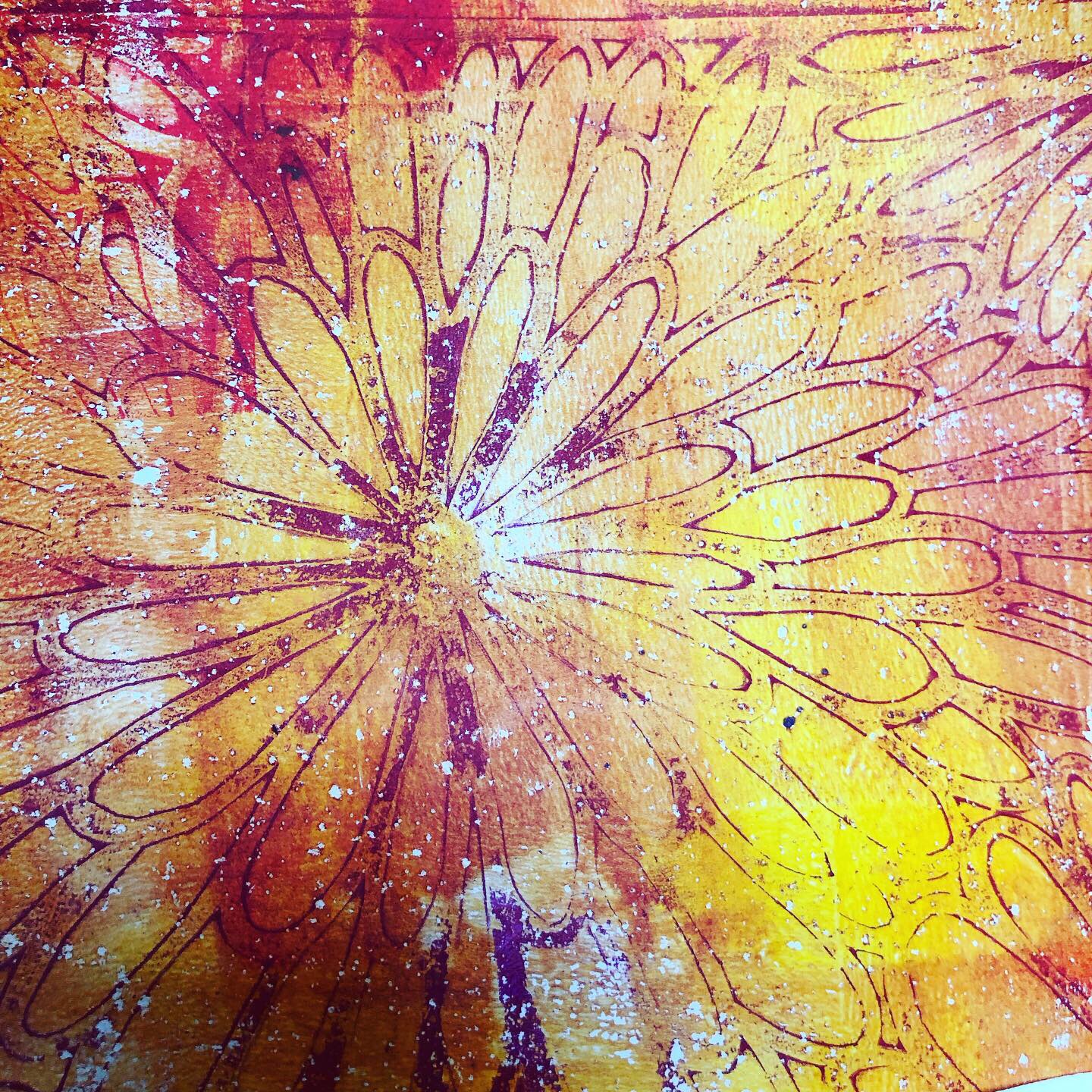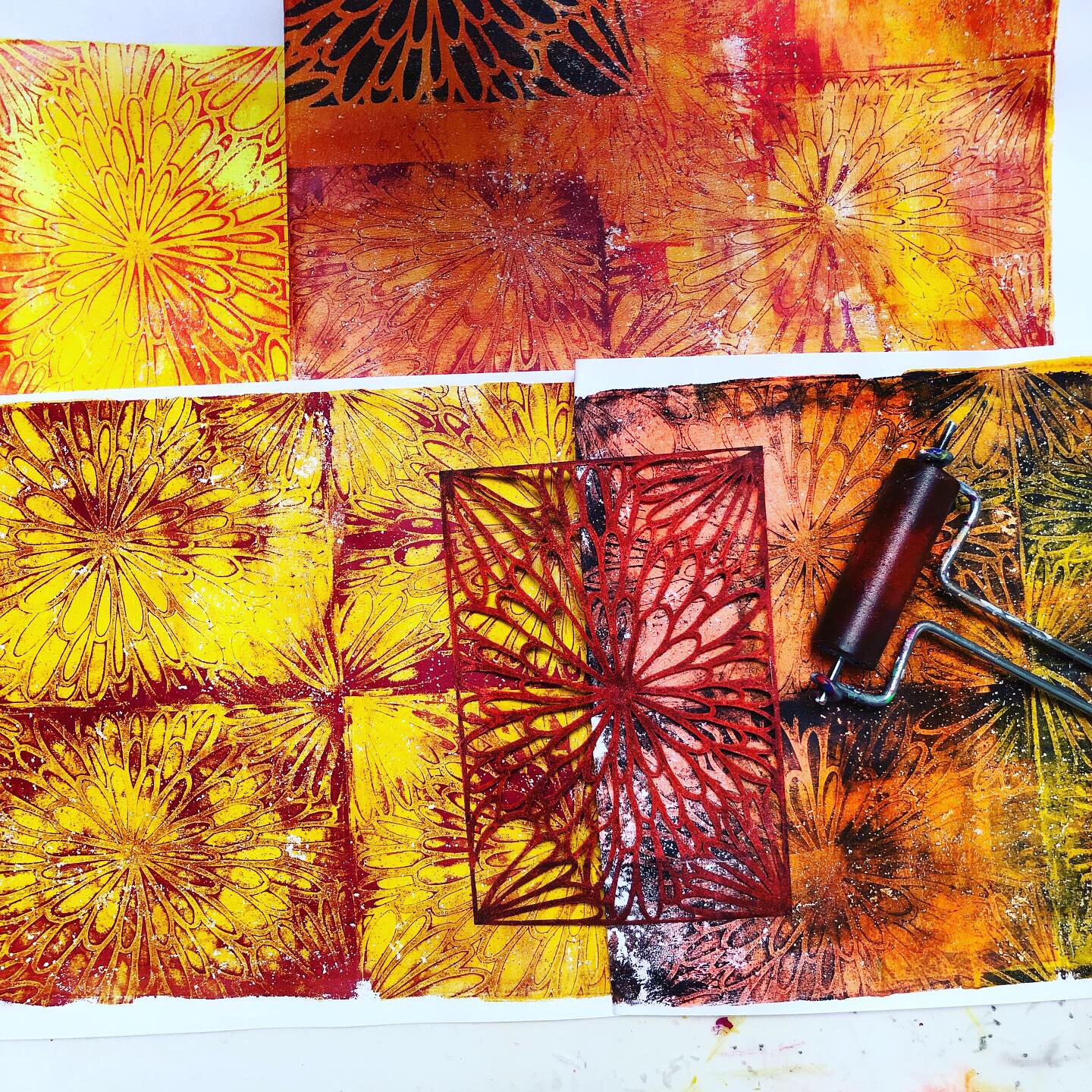 Did some gelli printing with that stencil. I never like my prints, so this will probably end up cut to collage pieces 😊