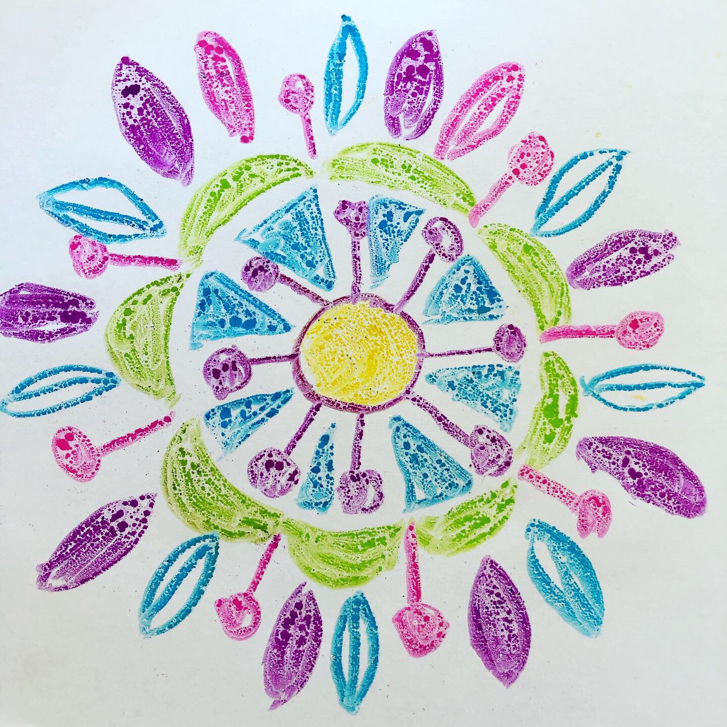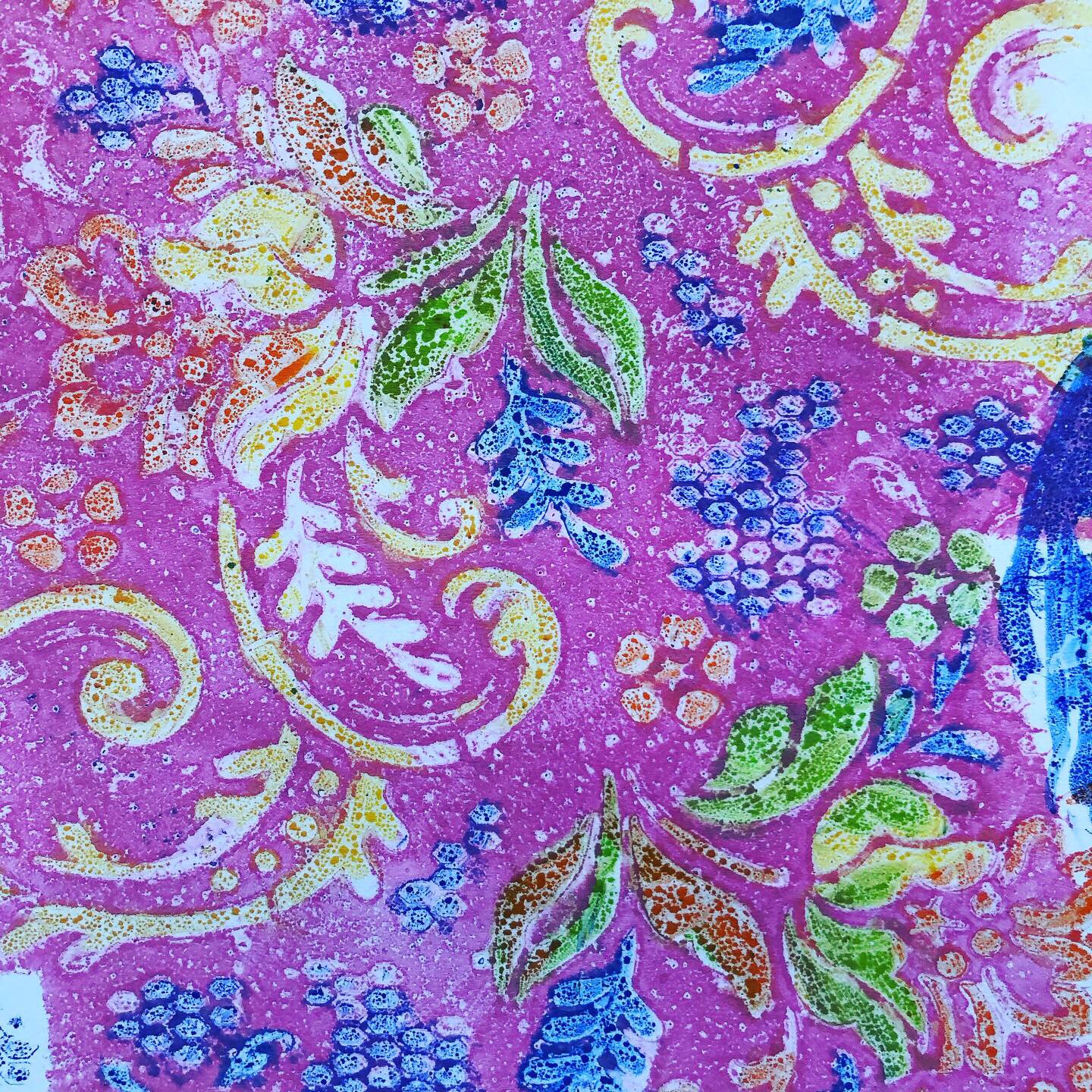 Some prints from yesterday because today I didn’t have time. I went to the embassy to get my new passport, but computer didn’t like the photo I brought, so I have to go again tomorrow. What a waste of time! As technology gets more advanced our lives get more complicated. Thankfully the meeting planned for tomorrow got canceled so I can go repeat the process of passport application. Anyway, about the prints: it’s water based markers and ink pads on gelli plate. Pretty cool!
