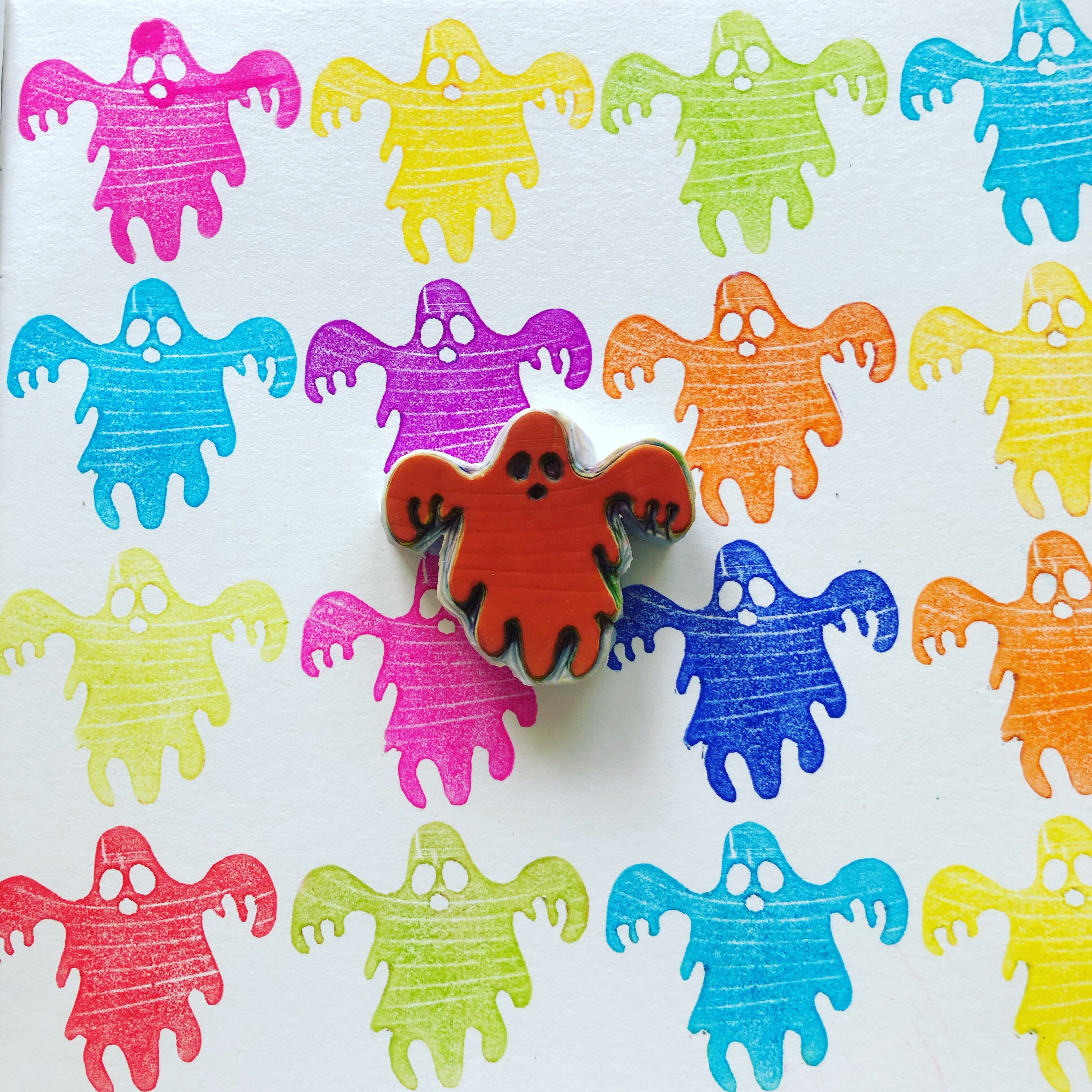 Missed art time yesterday, but today I quickly did this ghost. It’s almost end to my stash of moo carve and I am so glad. Will never buy it again.