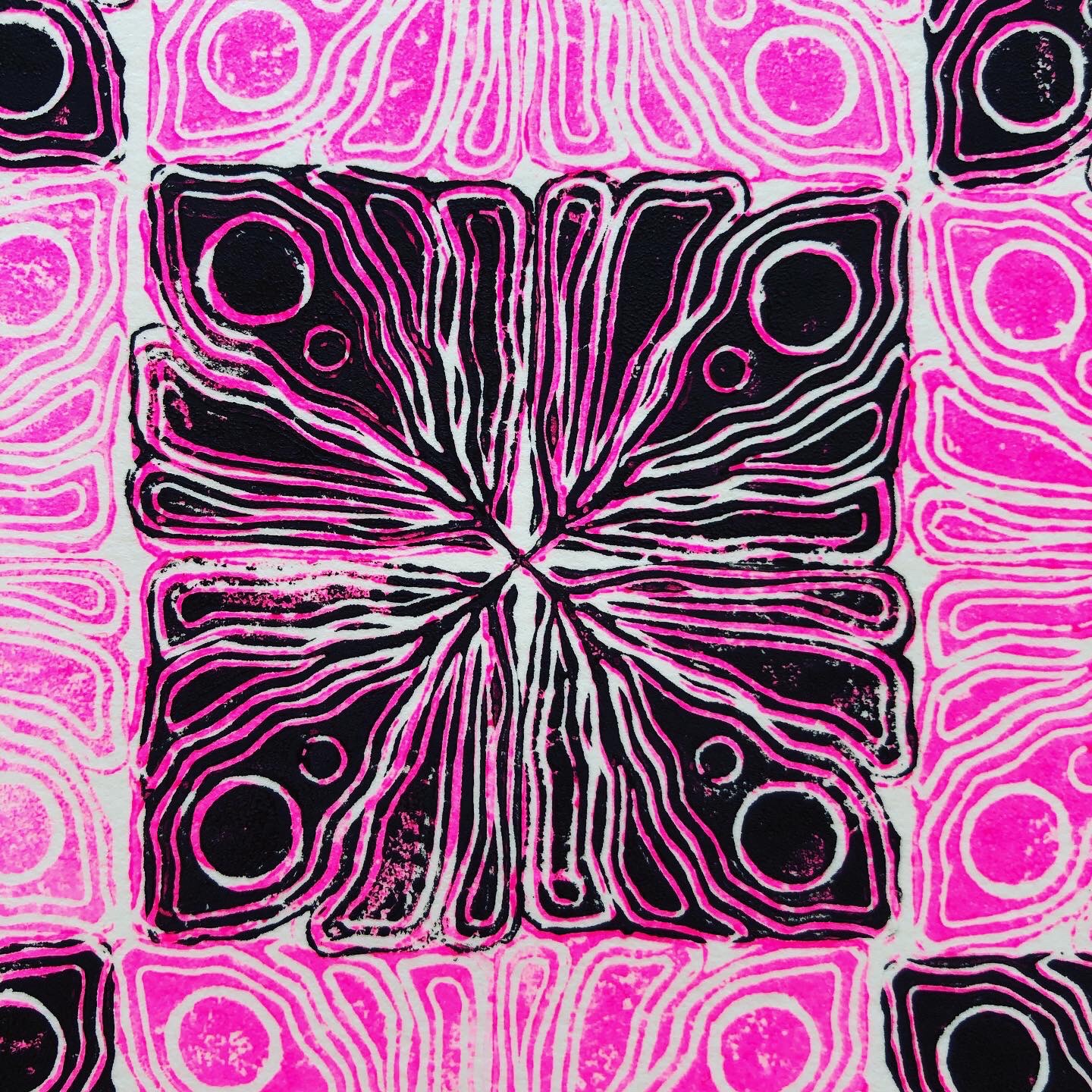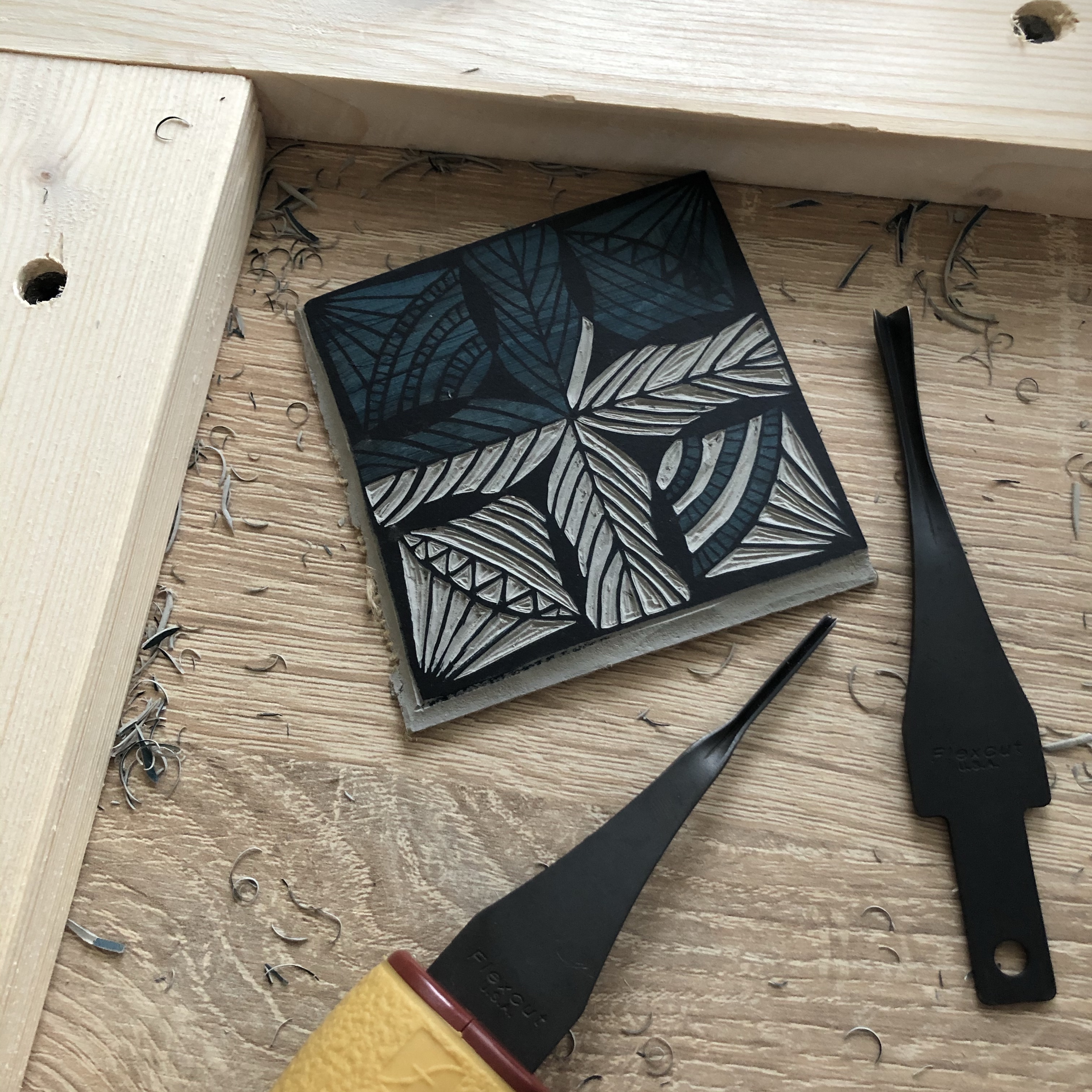 Today I continued to carve the block from yesterday, but I had only an hour so didn’t achieve much. Here’s a small one I did three days ago when I forgot to blog.