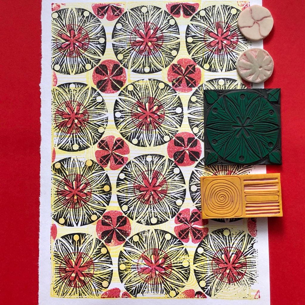 The rest are quick prints that I did for my #100littlepatternprints challenge that I made for myself. The trick is to post more often on IG and these are very good because they are done quickly. Sometimes I carved a stamp, sometimes I used what I already had. The point is I gave myself a short art break every day regardless of how busy I was at work; I made a pattern which could be an inspiration for some future pattern design idea; and I posted every day. Cool, right? Here they are: