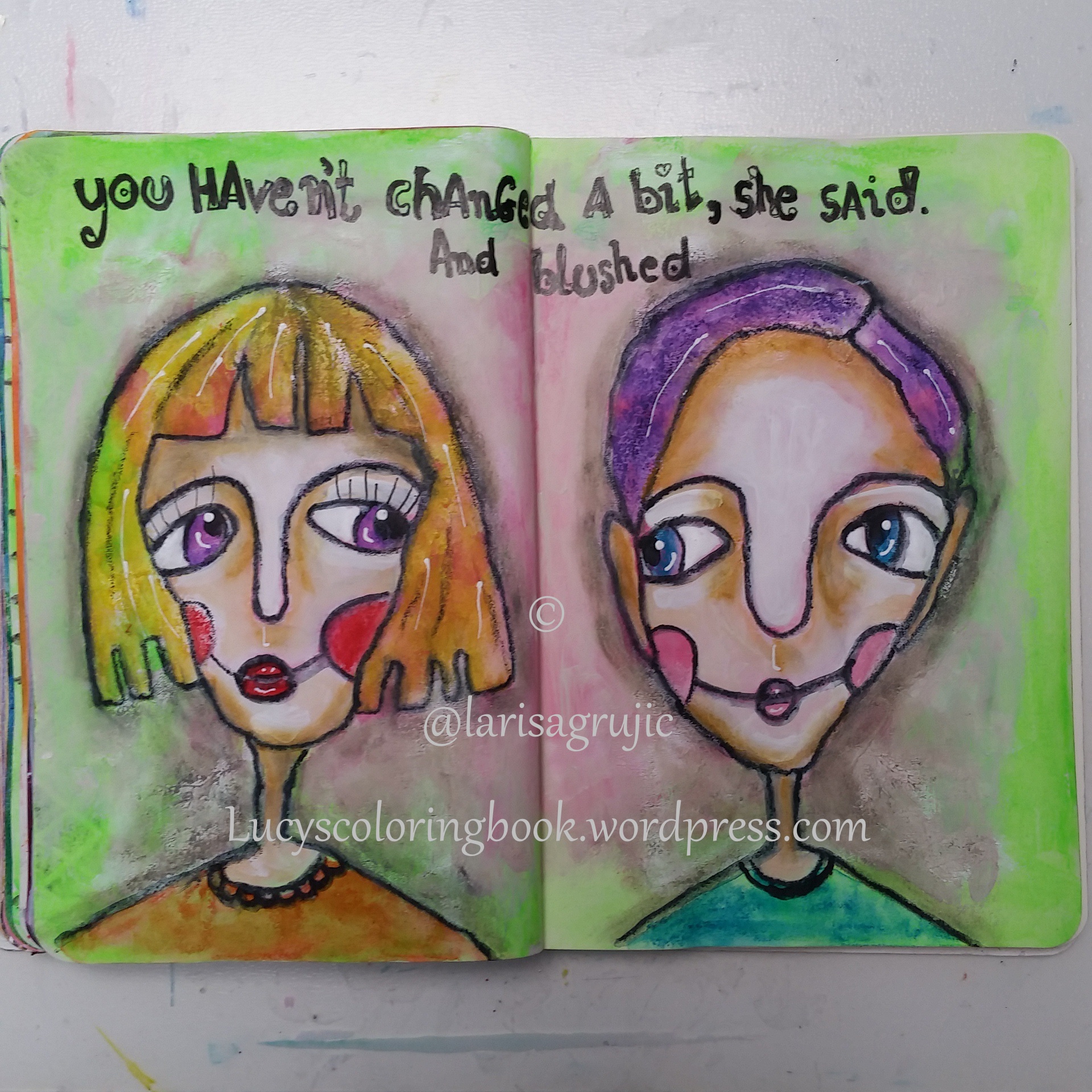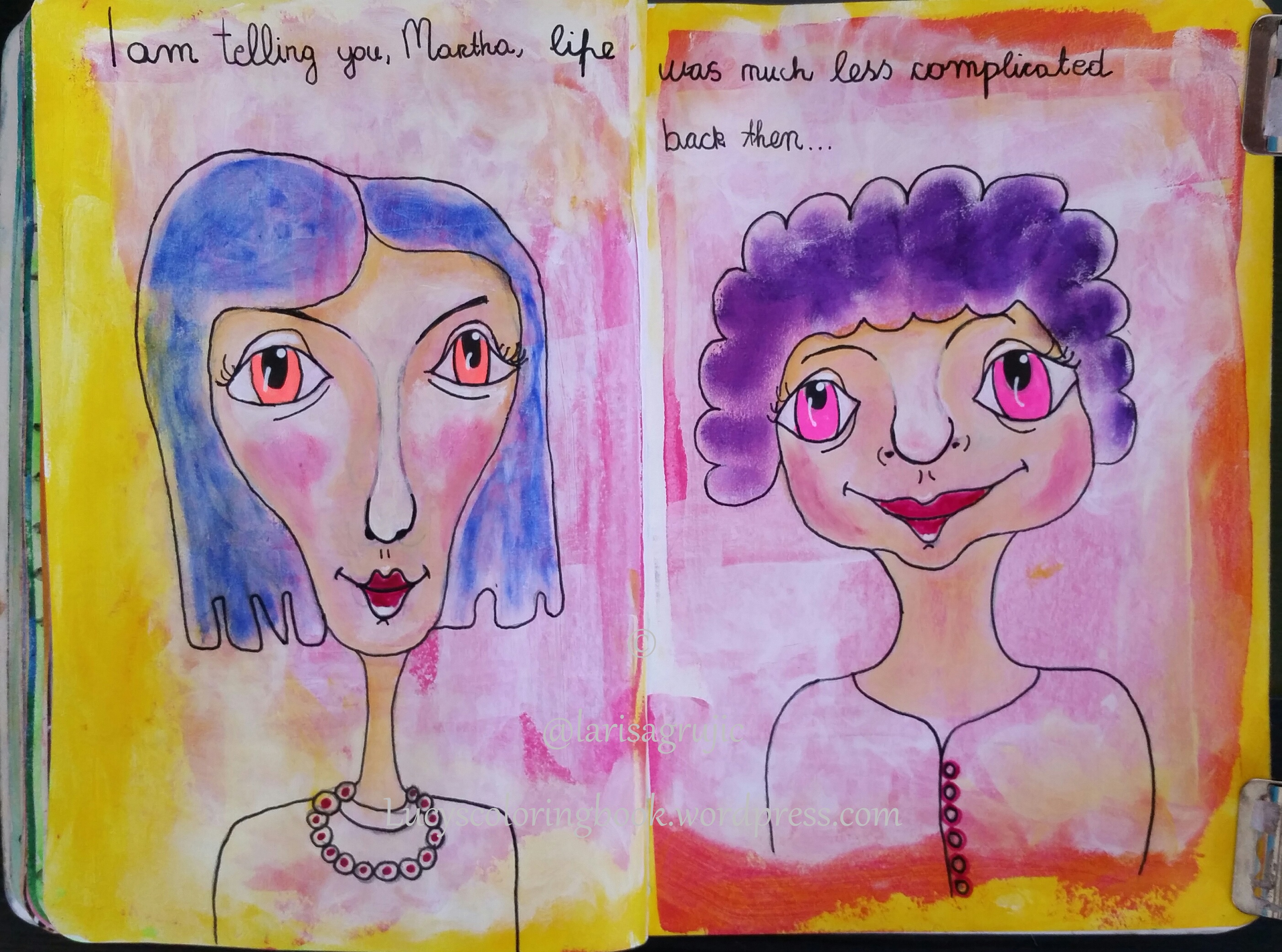 This one is without the face and I felt quite upset for a reason, which is really visible in the way I journaled. It’s not the one I look at with pleasure, but it’s an important part of the process of working my feelings out and documenting what happens on the way.
