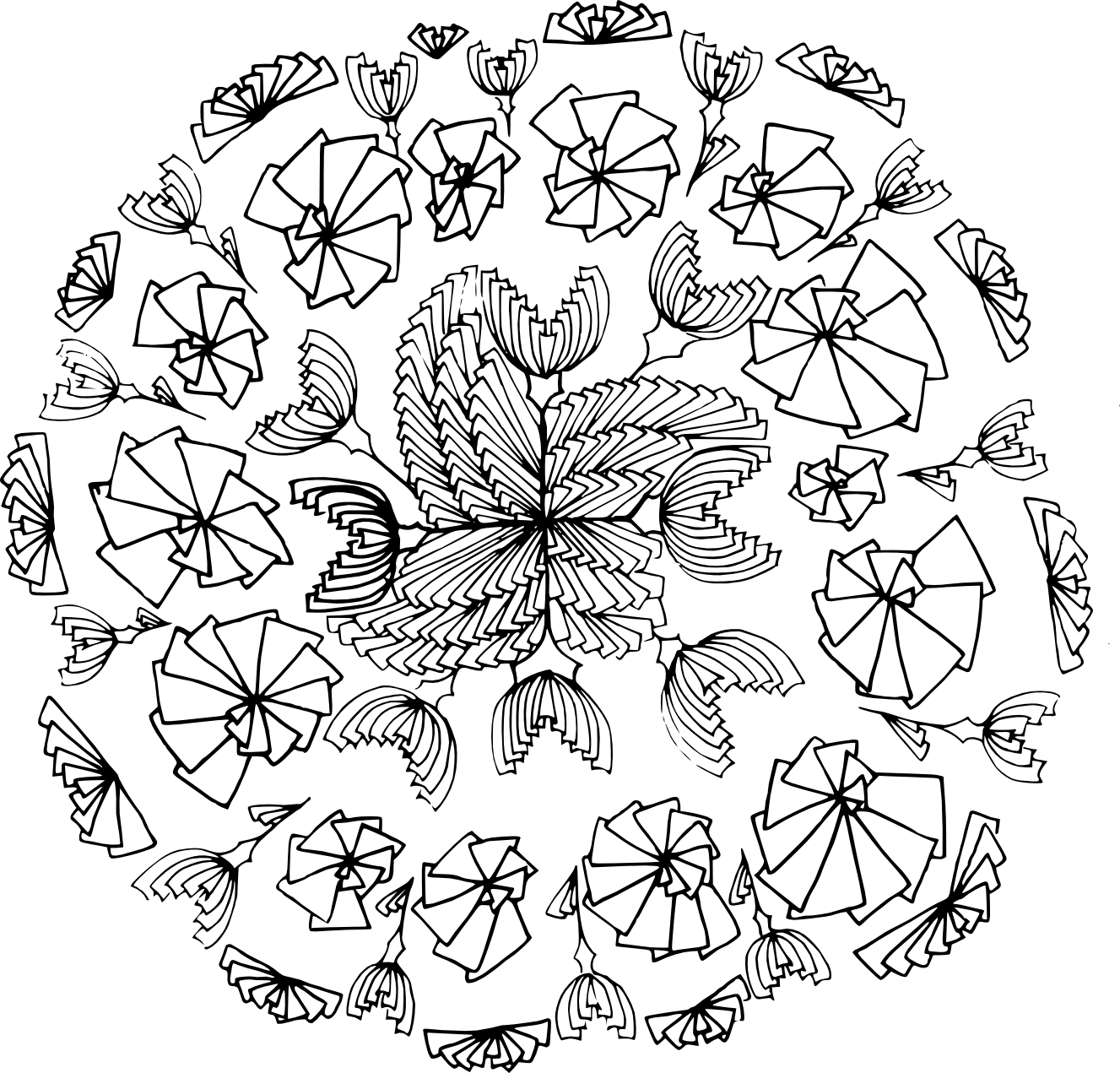 I did two line drawings on Wednesday, but did not scan them, so they will have to wait for another post. On Sunday there was again the arty morning: I made a journal page with a pattern from one of those Wednesday drawings. Here it is: